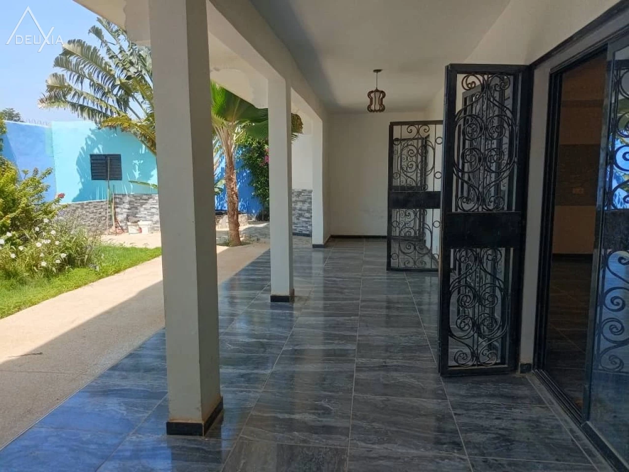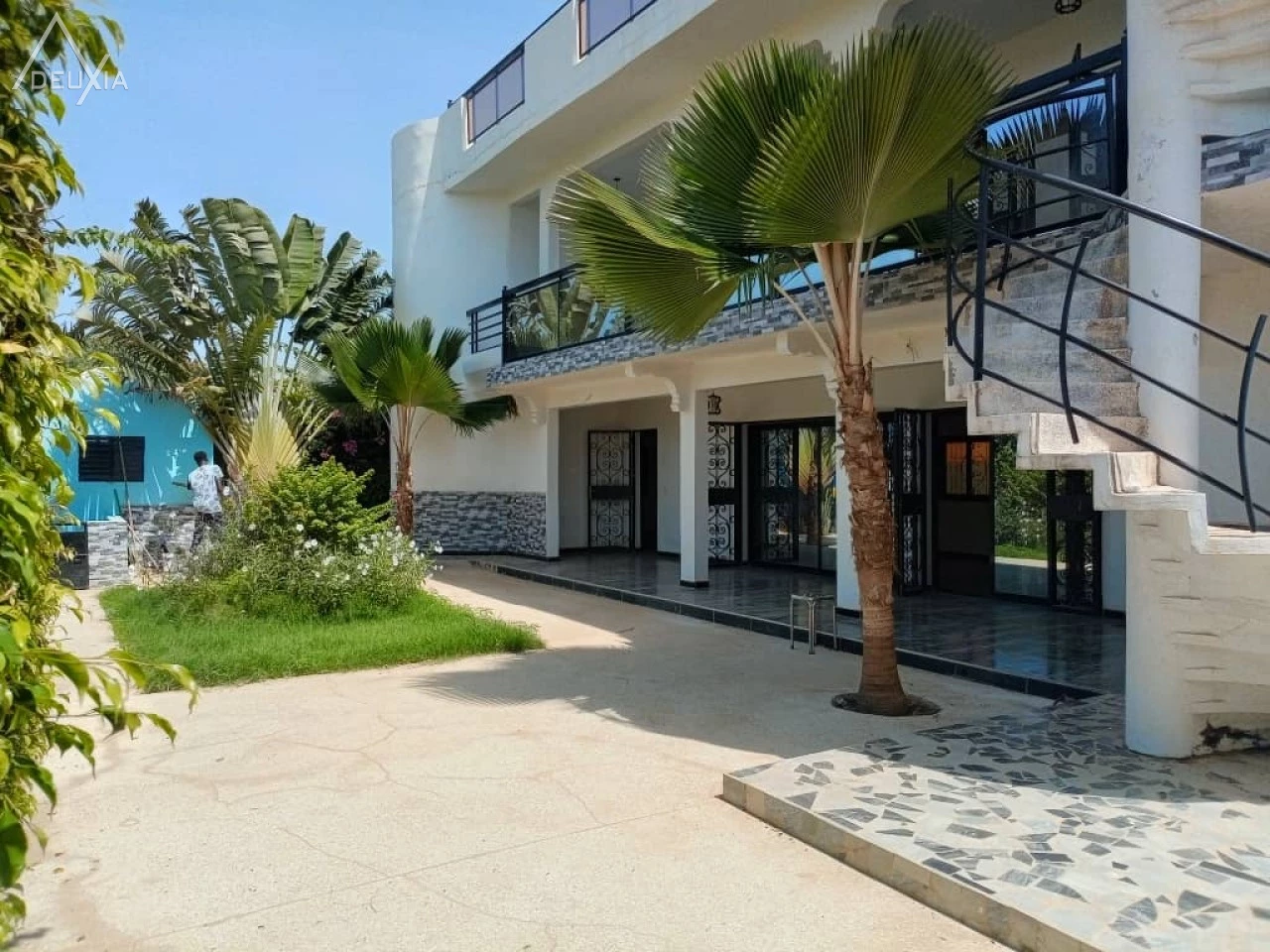 Située derrière la police, à environ 800 m de la route principale, cette villa sur trois niveaux se compose comme suit :